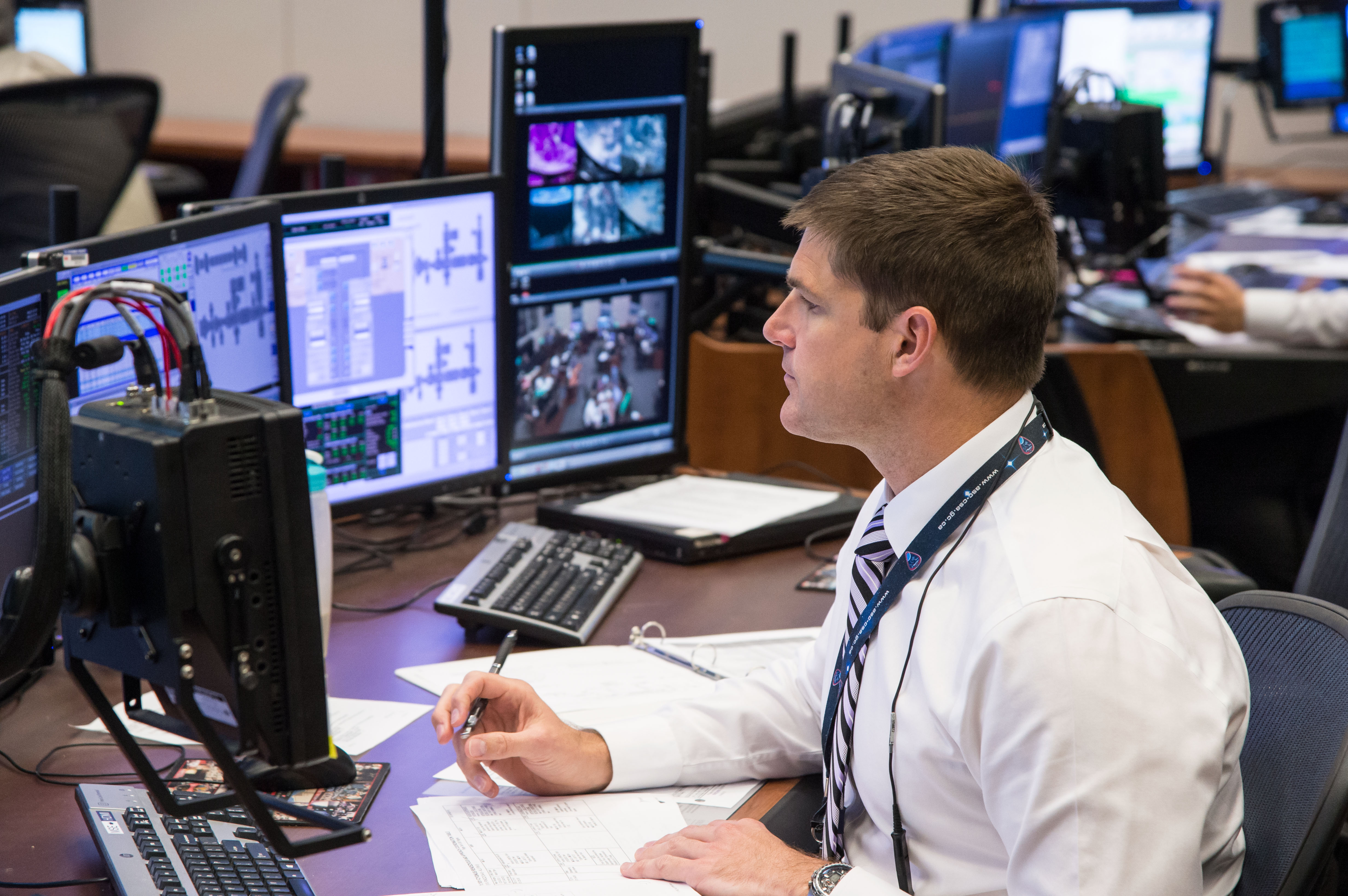 contrôle de mission de la NASA et les astronautes de la Station spatiale