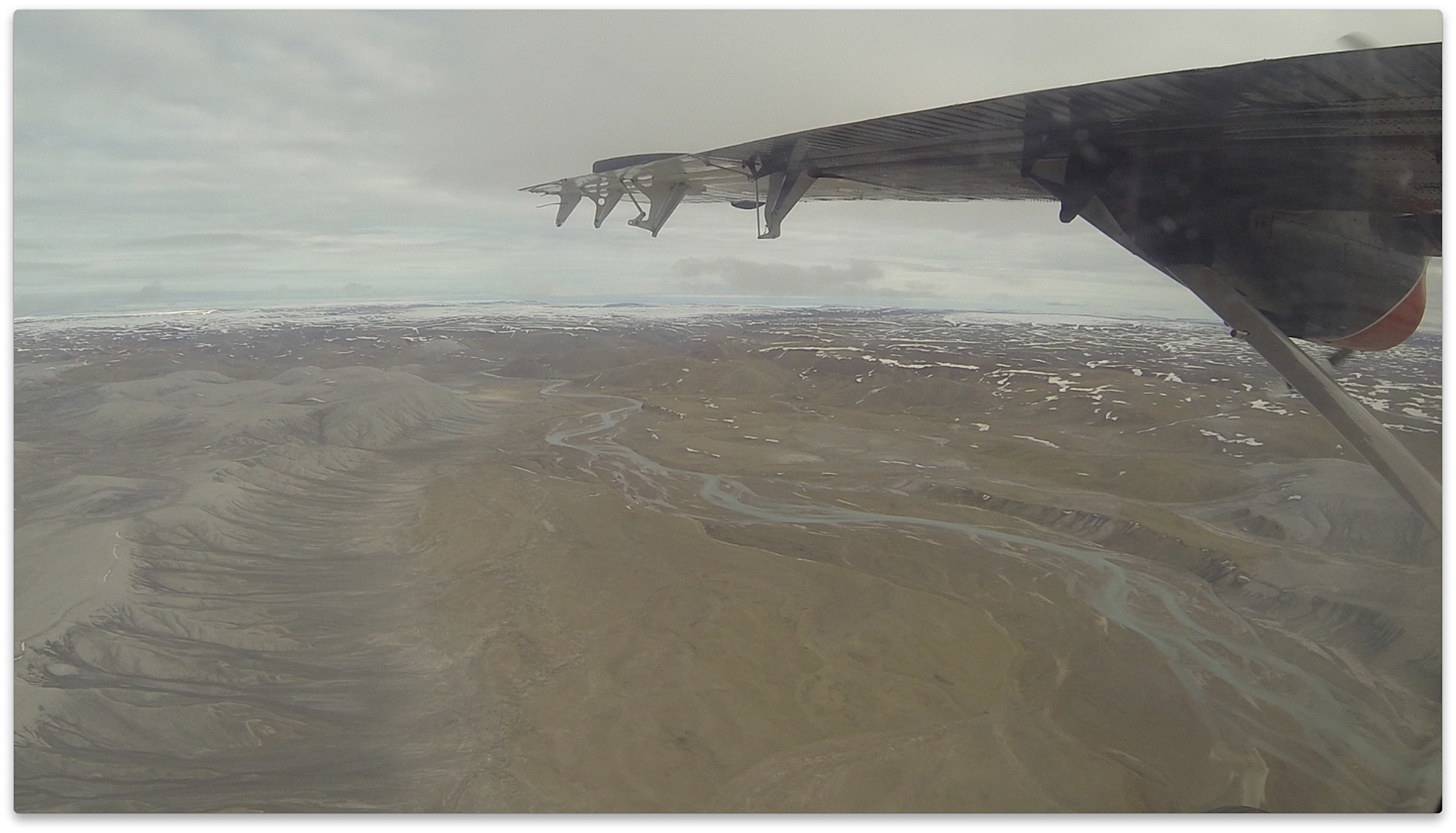 2013-07-17 - Jeremy Hansen via Twitter le 17 juillet – Cette photo a été prise à partir de notre avion Twin Otter en route vers le cratère d'impact. Ce dernier n’a pas l'air de faire ses 23 km, mais il est aussi clairement différent de la toundra environnante.