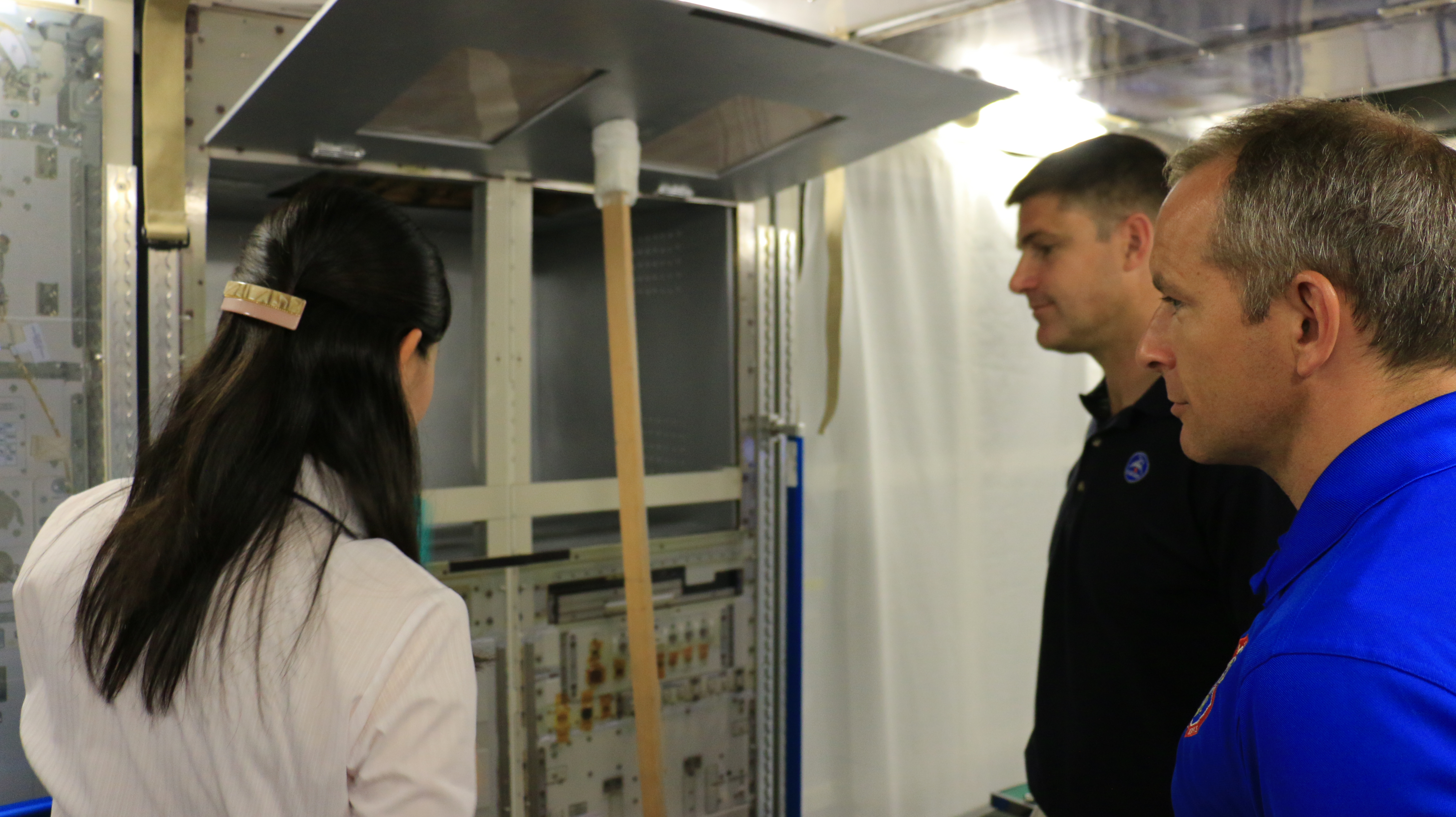 2016-06-01 – Du 2 au 10 juin 2016, David Saint-Jacques (à droite) et Jeremy Hansen (au centre) ont suivi une formation dans le simulateur du laboratoire Kibo à l'Agence japonaise d’exploration spatiale (JAXA), à Tsukuba, au Japon. (Source : JAXA.)