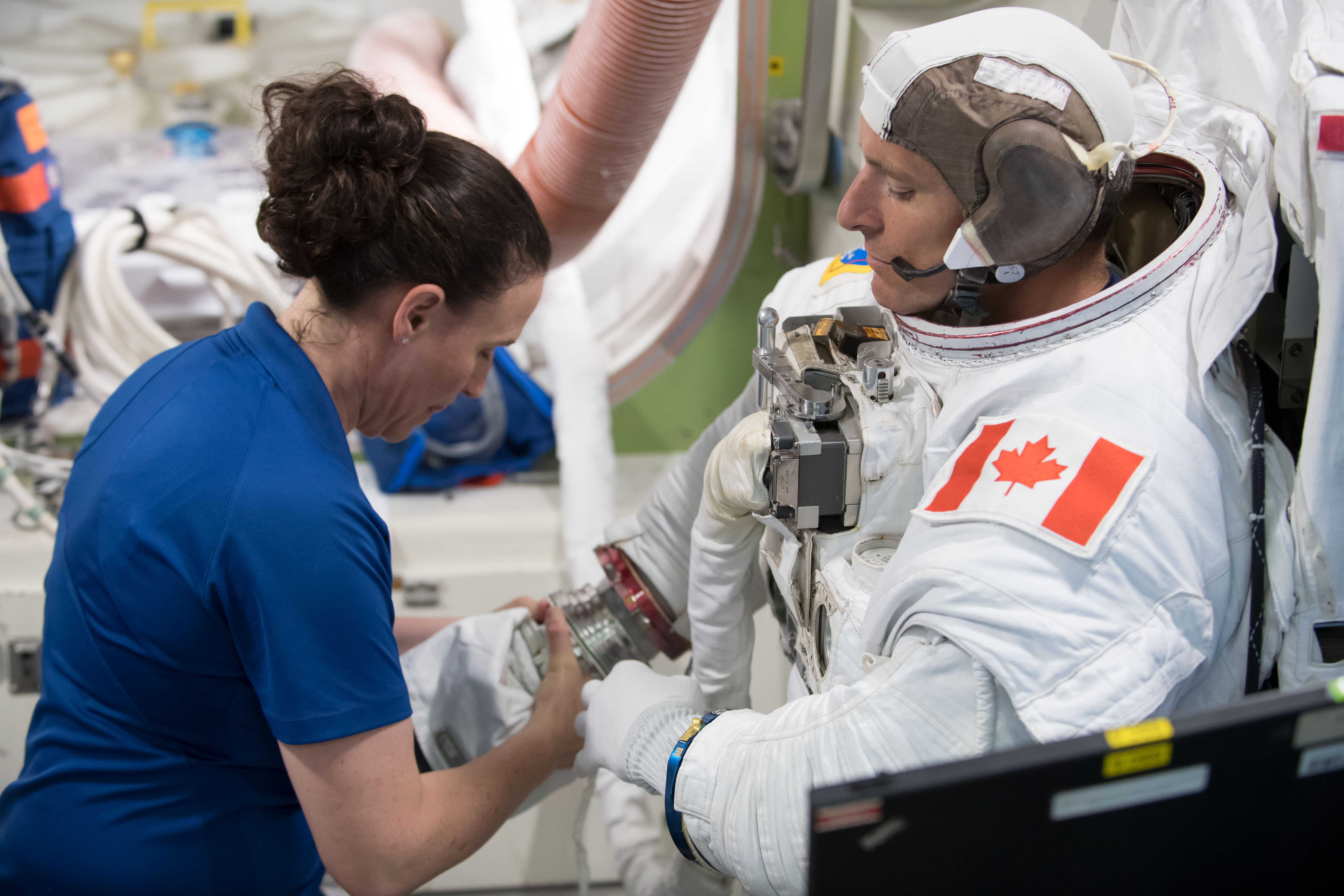 L’astronaute canadien David Saint-Jacques en formation dans le simulateur de sas de la Station spatiale internationale (SSI) au centre spatial Johnson (JSC) de la NASA