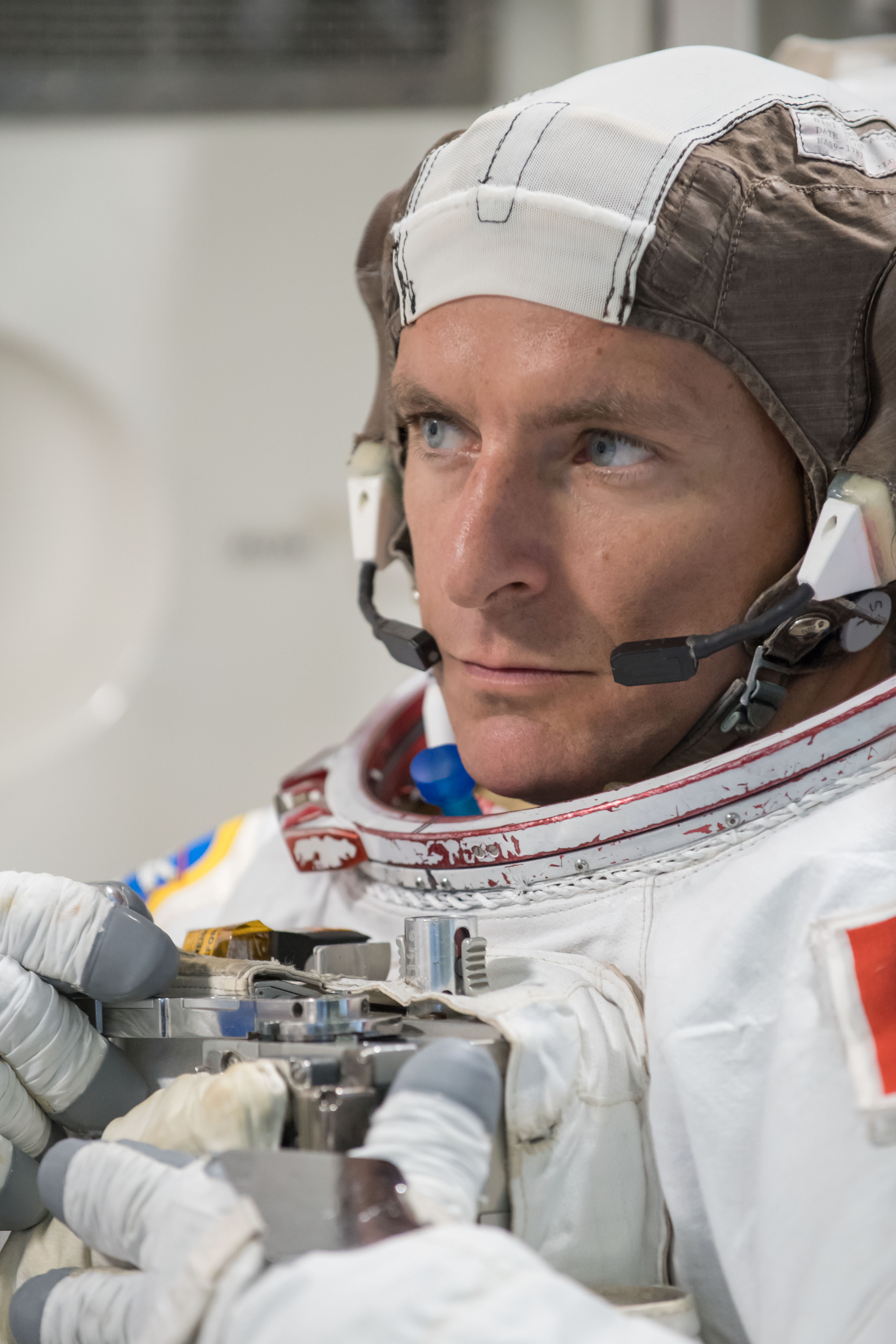 L’astronaute canadien David Saint-Jacques en formation dans le simulateur de sas de la Station spatiale internationale (SSI) au centre spatial Johnson (JSC) de la NASA