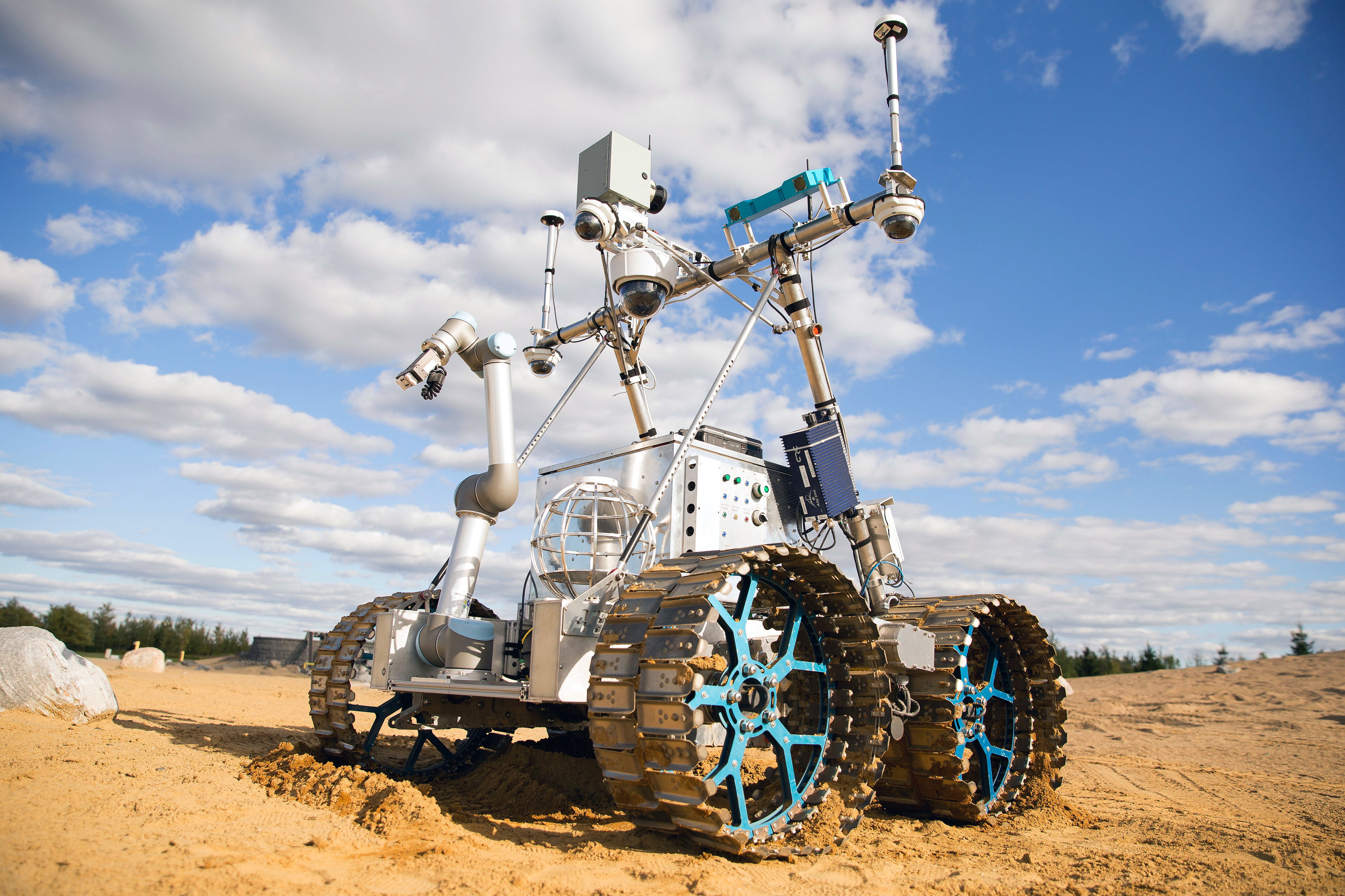 2017-09-28 - Essais avec le rover JUNO sur le terrain analogue de l'ASC dans sa configuration pour la mission LEAD. (Source : Agence spatiale canadienne.)