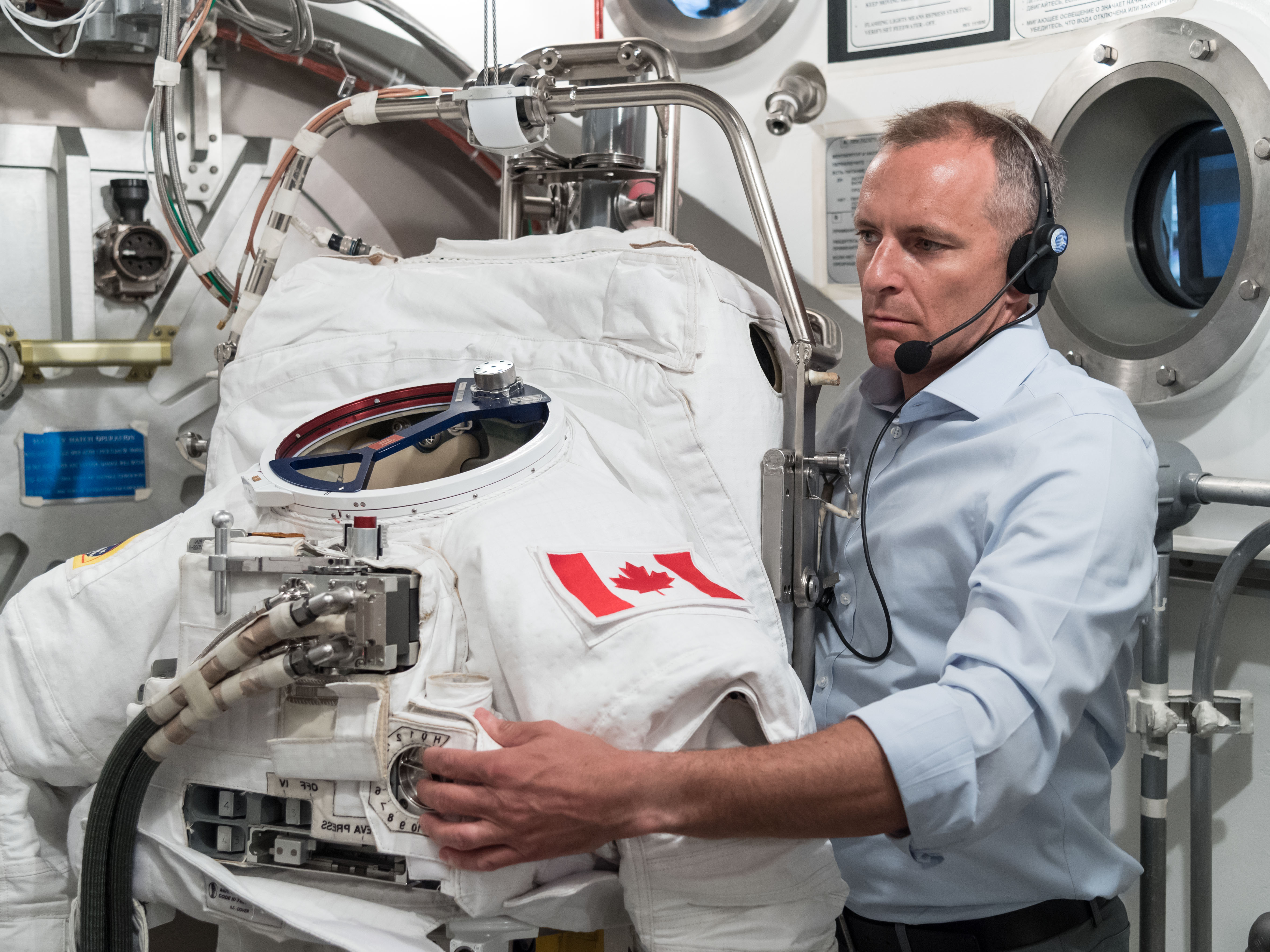 Test de la combinaison spatiale de l’astronaute canadien David Saint-Jacques dans une chambre à vide